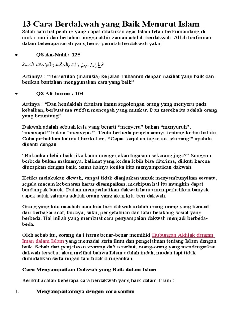Perintah Berdakwah dalam Al-Quran. 23 Desember 2020 1238 1187 0 0 Laporkan Konten. Supaya ajaran islam tetap berlanjut.